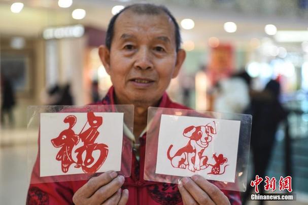 济南剪纸艺人剪2018只“旺旺狗”迎新年