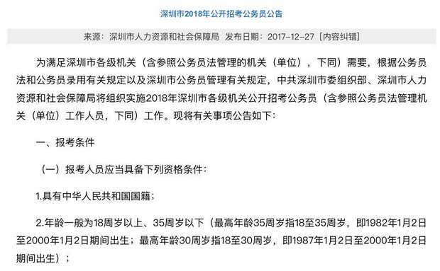 深圳新闻网12月27日讯(记者 余俐洁 通讯员 何升)记者获悉,12月27日,中共深圳市委组织部、深圳市人力资源和社会保障局联合发布《深圳市2018年公开招考公务员公告》,招考公务员525名。