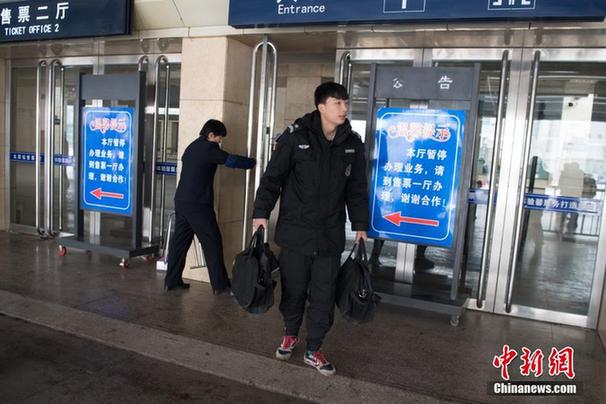 1月4日,山西太原火车站,安保人员在站外护送新的票据卷,保障票据安全。在这个100平方米左右的仓库内,整齐摆放着110组柜子,存放着上千万张票据。随着2018年春运临近,太原火车站的各个售票窗口票据需求将会越来越大。据票库管理人员段军艳介绍,网络购票已成为旅客主要选择,自动取票机的票据需求是人工售票窗口的3倍。