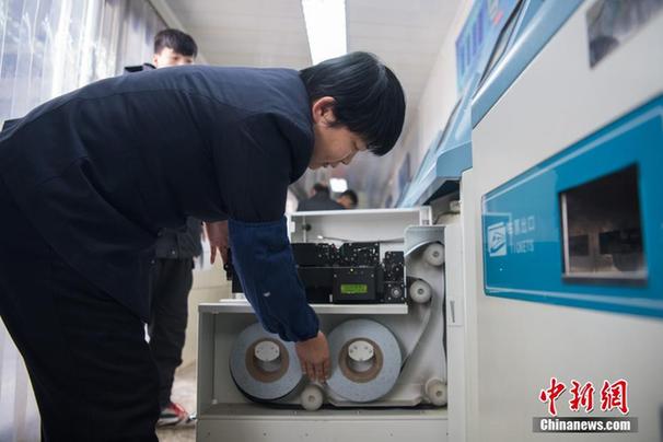 1月4日,山西太原火车站,售票员为自动取票机安装新的票据卷。在这个100平方米左右的仓库内,整齐摆放着110组柜子,存放着上千万张票据。随着2018年春运临近,太原火车站的各个售票窗口票据需求将会越来越大。据票库管理人员段军艳介绍,网络购票已成为旅客主要选择,自动取票机的票据需求是人工售票窗口的3倍