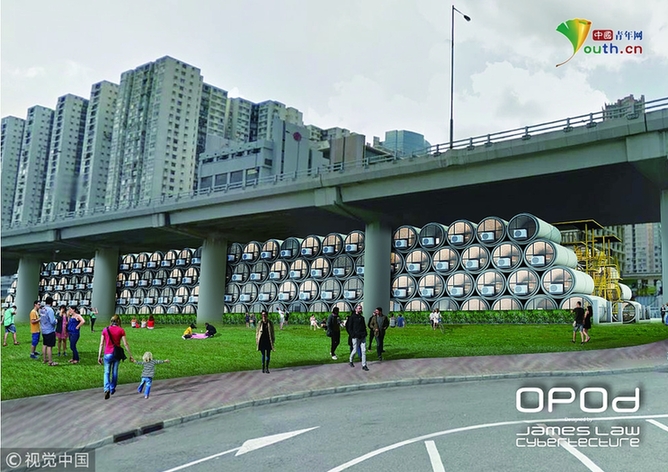 2018年1月16日讯(具体拍摄时间不详),如何解决住房难?建筑师James Law推出水泥管公寓房,舒适又经济。