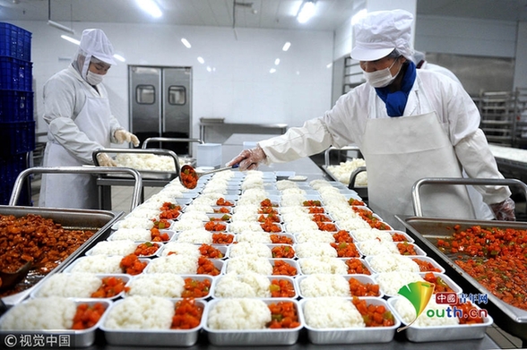 2017年7月17日,记者走进了北京铁路局石家庄站最新成立的12306互联网订餐配送中心,带您见证一盒“外卖”盒饭从制作到送达旅客座位上的全过程。
