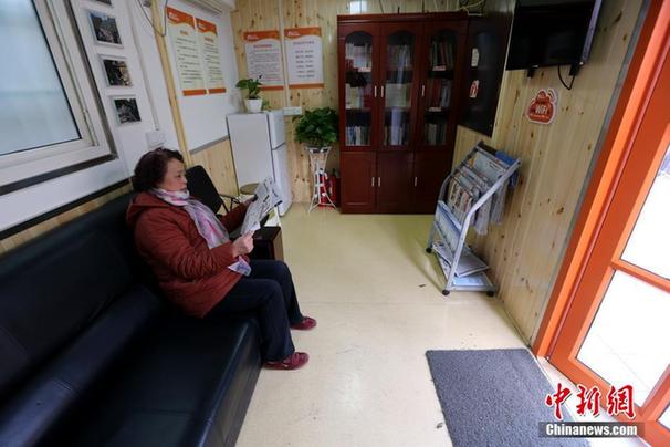 1月22日,民众在“驿站”内休息。当日,数个“城市驿站”矗立在西安城东纺织城街道上,以供民众免费休息,室内配备了沙发、微波炉、医药箱等贴心生活用品,而电视、各式手机充电器和WiFi全覆盖更令其被称为“路边的五星酒店”。