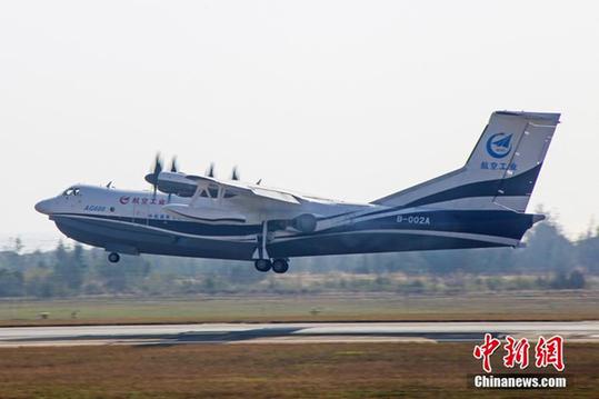 水陆两栖飞机“鲲龙”AG600进行第二次试飞