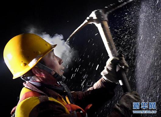 打冰队的队员在观音堂隧道内进行打冰作业(1月25日摄)。