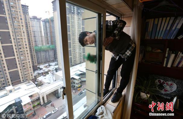 90后小伙辞去高薪工作改行擦玻璃 订单不断