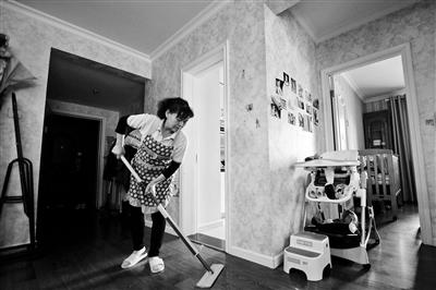 来自山西吕梁的家政服务员蔡莲香今年选择在北京过年,她平日里的工作主要是帮着干家务、照顾两个幼儿,春节期间一个月可以比平时多挣一两千元。摄影/北京青年报记者魏彤