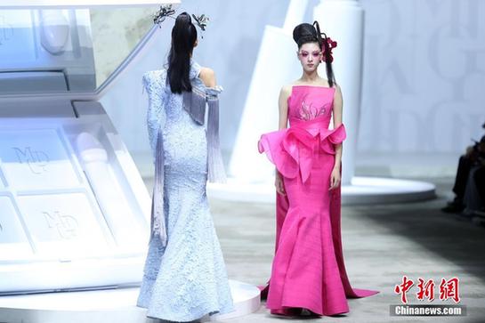 3月26日,模特展示毛戈平设计的彩妆造型。当日,东方印记·2018毛戈平MGP彩妆造型发布在北京举行。毛戈平以中华文化为基底,从蕴含着古老东方哲学的古典诗词、绘画、服饰等元素汲取灵感,注入本次造型设计,演绎了东方美学的摩登风尚。