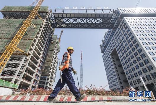 3月28日,中建三局的建设者从提升完成的“空中生态绿廊”周边走过。当日,经过48小时的走走停停,总重1500吨、高9.9米、宽18米、跨度76.5米的钢结构连廊整体提升至离地73.6米的高空,横亘于武汉光谷新城核心区域“中建·光谷之星”项目两栋塔楼之间。