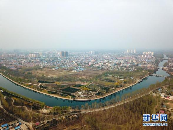 3月30日无人机拍摄的雄县大清河沿岸景观。