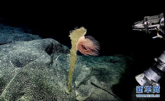 4月1日,“发现”号深海机器人在海山采集捕蝇草海葵样品。海山是世界海洋生物多样性研究的热点地区。在国家科技基础资源调查专项“西太平洋典型海山生态系统科学调查”支持下,“科学”号科考船在西太平洋麦哲伦海山全面展开综合调查。