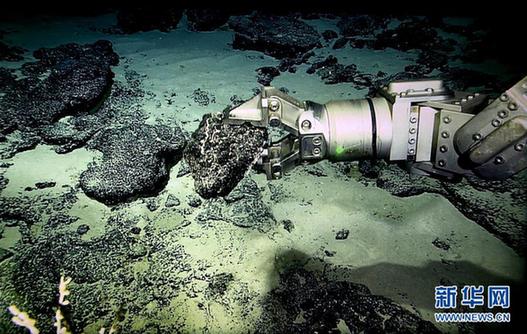4月1日,“发现”号深海机器人在海山采集岩石样品。海山是世界海洋生物多样性研究的热点地区。在国家科技基础资源调查专项“西太平洋典型海山生态系统科学调查”支持下,“科学”号科考船在西太平洋麦哲伦海山全面展开综合调查。