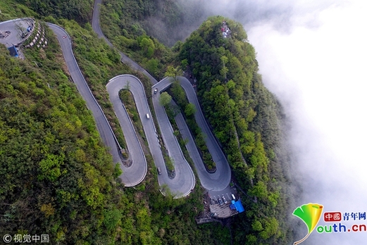 实拍湖南湘西矮寨盘山公路 云雾美景入画来