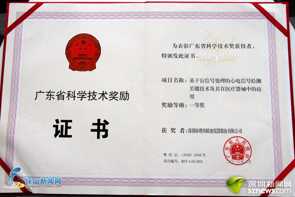日前,广东省科技创新大会在广州隆重举行,深圳共有44个项目获奖,一等奖共5项,记者从坪山区科创署了解到,来自坪山区的高科技医疗企业——深圳市理邦精密仪器股份有限公司,凭借“基于盲信号处理的心电信号检测关键技术及其在医疗器械中的应用”项目摘得一等奖,项目对心电及心音检测信息化和智能化的关键技术,以及在多导联心电信号采集、胎心检测分析和病理特征波提取等核心共性技术上取得了突破。