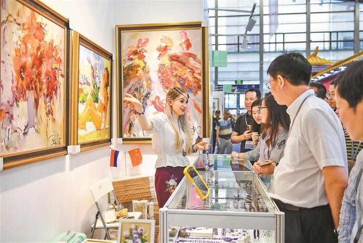 观众在嘉兰德艺术画廊展台前驻足欣赏。