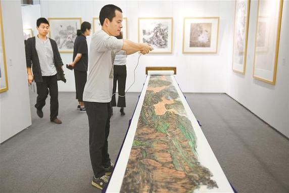 范桦的百米长卷《沿黄丹青八百里》吸引观众驻足欣赏。