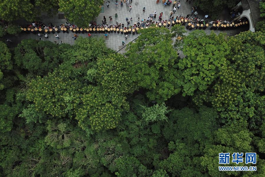 5月22日,来自杭州各大寺院、杭州佛学院的僧人托钵行脚,沿天竺路行至杭州灵隐寺附近,接受沿途信众的慈善捐赠(无人机拍摄)。当日,浙江杭州举行“东南佛国·杭州”托钵行脚慈善活动。来自杭州各大寺院、杭州佛学院等1000名僧人著衣持钵,头戴斗笠,从上天竺法喜讲寺出发,沿天竺路,一路托钵行脚至杭州灵隐寺,接受沿途信众的慈善捐赠,所得善款将全部捐赠给慈善机构。