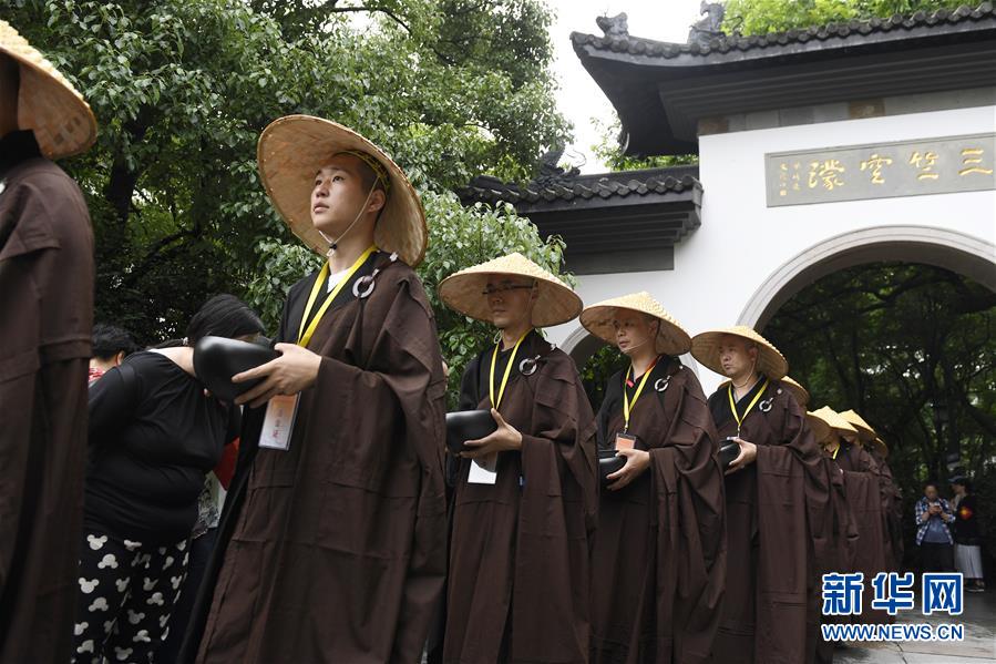 5月22日,来自杭州各大寺院、杭州佛学院的僧人托钵行脚,沿天竺路走向灵隐寺。当日,浙江杭州举行“东南佛国·杭州”托钵行脚慈善活动。来自杭州各大寺院、杭州佛学院等1000名僧人著衣持钵,头戴斗笠,从上天竺法喜讲寺出发,沿天竺路,一路托钵行脚至杭州灵隐寺,接受沿途信众的慈善捐赠,所得善款将全部捐赠给慈善机构。