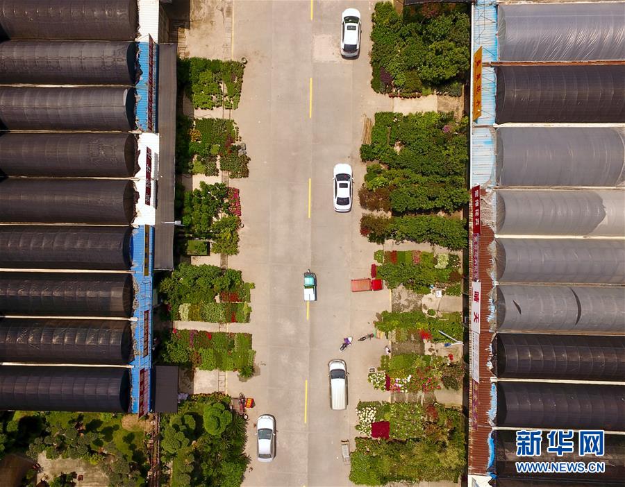 福建漳州龙海市九湖镇长福村花卉商铺及大棚(5月8日无人机拍摄)。