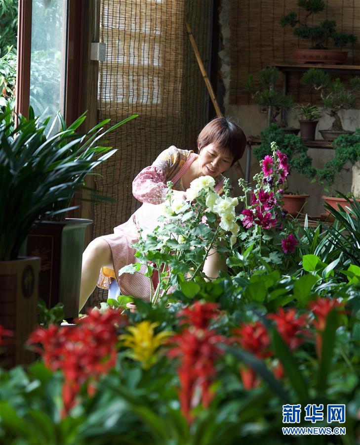 5月8日,在福建漳州龙海市九湖镇长福村,一名村民在修剪花卉。