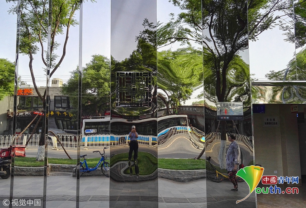 北京簋街“最亮厕所” 外墙如镜子