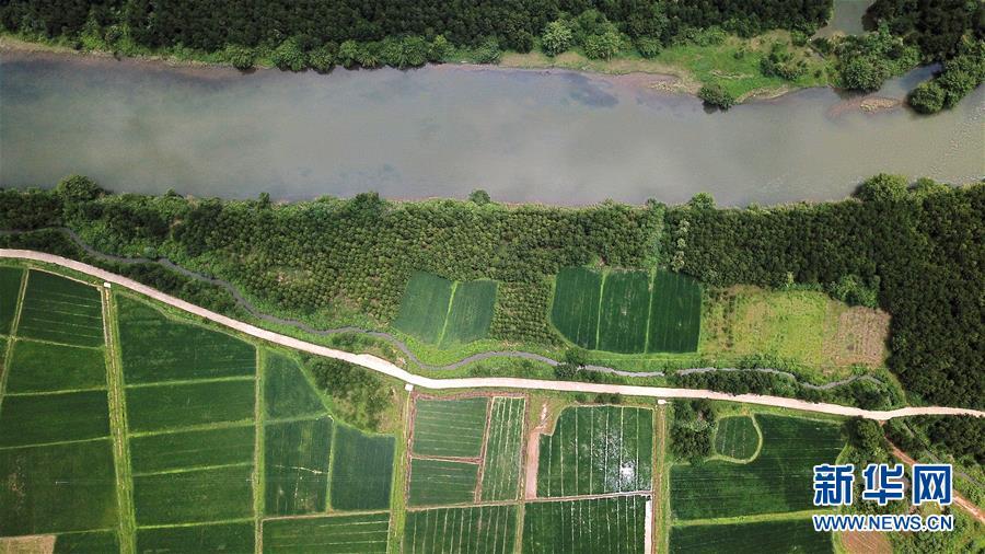 这是槎滩陂水利灌溉工程一景(5月29日无人机拍摄)。槎滩陂水利灌溉工程位于江西省吉安市泰和县境内,始建于五代十国南唐时期,距今已有1000余年历史,目前仍承担着沿岸近5万亩标准农田的灌溉工作。2016年11月8日,在泰国清迈召开的第二届世界灌溉论坛暨国际灌溉排水委员会67届国际执行理事会上,该工程被授牌列入世界灌溉工程遗产名录。为了更好的保护槎滩陂水利灌溉工程及其沿岸的生态,槎滩陂实行“河长制”及“乡村共管制”,沿岸的村庄都组建了巡河护河队,定期对槎滩陂沿河上下进行巡护。