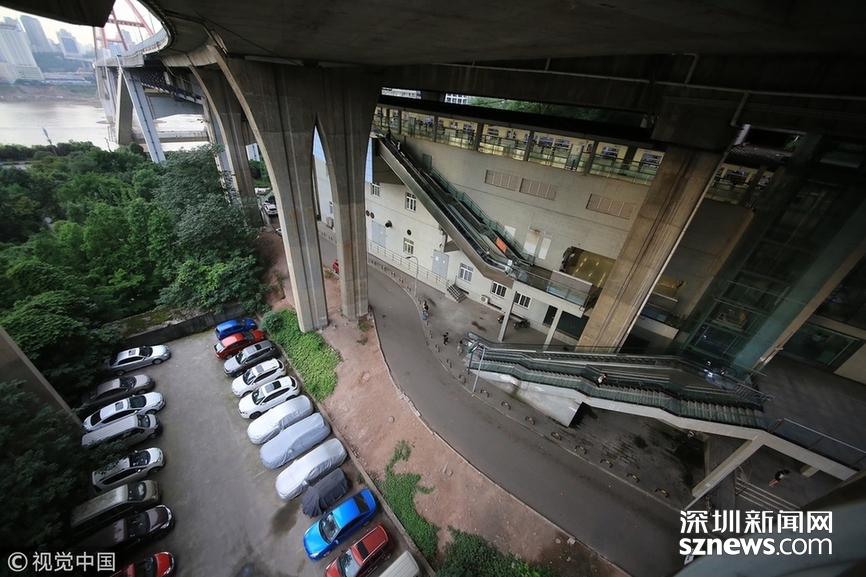 深圳新闻网讯 2018年5月29日,重庆,魔幻重庆又双叒叕放大招!还有一个独特的亮点,重庆轨道交通3号线铜元局站,出口由一段长梯衔接上方立交桥和下方的路面,与全国最高城市立交桥苏家坝立交组成了独特风景,许多游客专门赶来拍照。