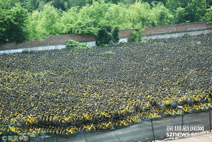 深圳新闻网讯  近日,在杭州城北一废弃的近万平方米的工地上,5万余辆的小黄车以双层的形式密密麻麻堆积着,如同“黄色海洋”一般很是壮观。原来这些小黄车是从杭州主城区减量退出后堆放在一起的,经过检修后将送往附近城镇投入使用。