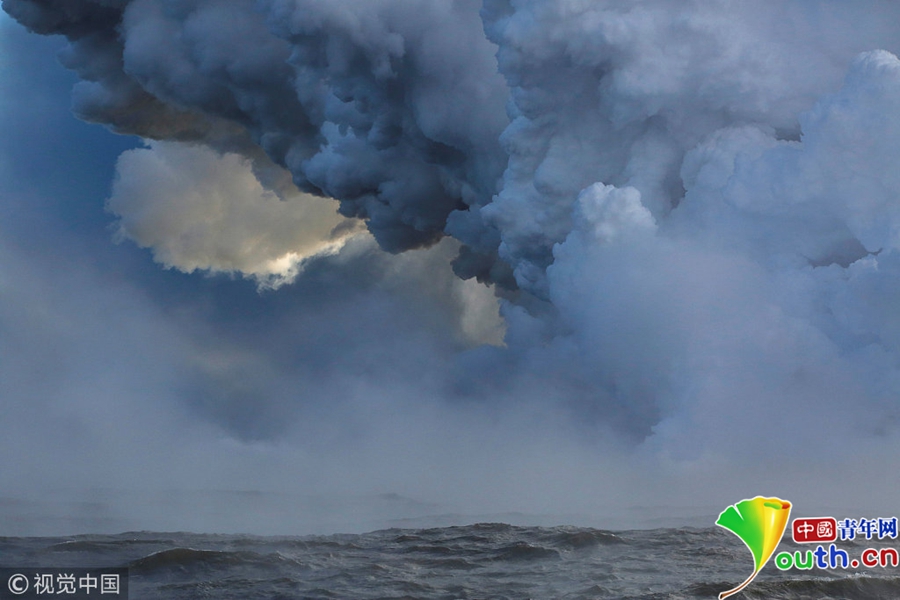 当地时间6月4日,美国夏威夷基拉韦厄火山持续喷发,熔岩流入了太平洋之中,升起巨大的烟雾。