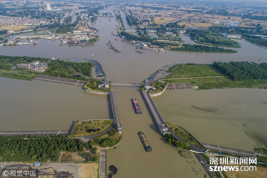 深圳新闻网讯 2018年6月3日,航拍江苏淮安水上立交,船只有序航行。淮安作为漕运的重要枢纽,自古就占据着重要的地位,尤其是这座“水上立交”,实现了淮河水道和京杭大运河的交叉,既可以满足运河的正常通行,又可以保障淮河入海水道的畅通,将运河水利技术推向新的台阶。