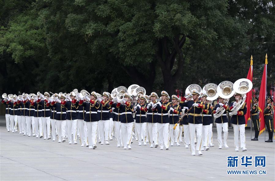 这是6月6日在欢迎仪式上拍摄的行进乐队。作为欢迎仪式中的重要一环,军乐团队列行进表演也进行了多项改进。最为明显的是行进乐队的服装变化:由原来红色上衣、白色长裤、金色腰带改为藏蓝色上衣、白色长裤、白色皮鞋、白色腰带和佩章。
