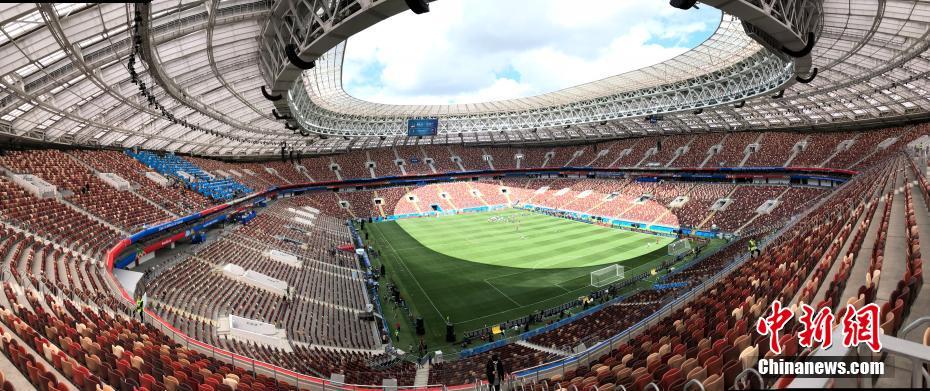 当地时间6月13日,记者进入莫斯科卢日尼基体育场内部,2018年俄罗斯世界杯揭幕战将在这里打响。
