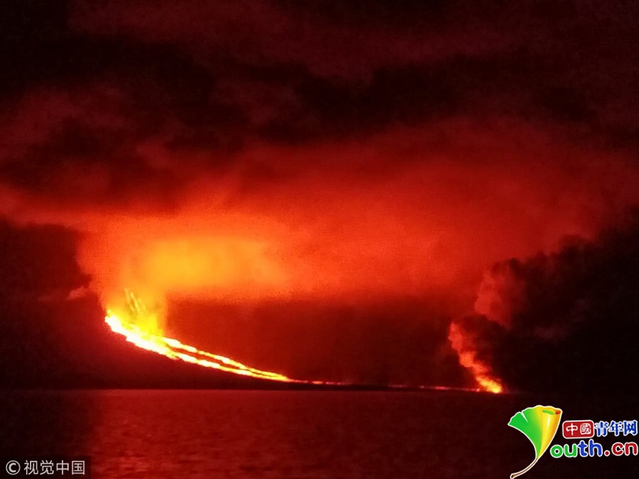 加拉帕戈斯群岛火山爆发 岩浆流淌成河