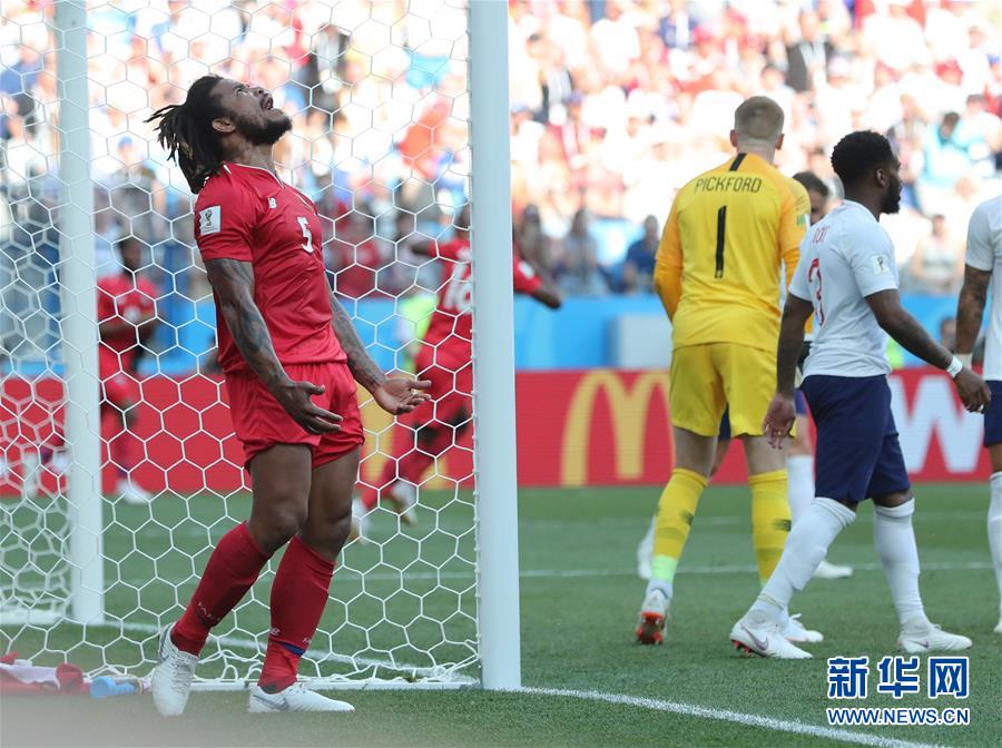 6月24日,巴拿马队球员罗·托雷斯(左)在比赛中错失得分机会后懊悔。当日,在下诺夫哥罗德进行的2018俄罗斯世界杯足球赛G组小组赛中,英格兰队以6比1战胜巴拿马队。新华社记者曹灿摄