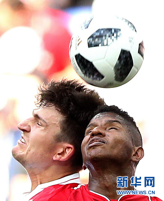 6月24日,英格兰队球员马奎尔(左)与巴拿马队球员埃斯科瓦尔拼抢。当日,在下诺夫哥罗德进行的2018俄罗斯世界杯足球赛G组小组赛中,英格兰队以6比1战胜巴拿马队。