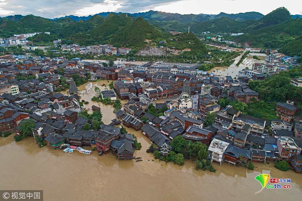 2018年6月22日,贵州省凯里市下司古镇遭受强降雨袭击,下司水文站16时20分超危急水位2.56m,相应流量3940m3/s(洪水重现期为30年一遇)的洪水。境内的清水江洪水暴涨,江水倒灌古镇,大部分区域的民房、街道、农田等被淹。目前仍然处于停电状态,具体损失尚在统计中。