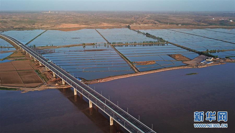 宁夏银川市阅海湖(5月17日无人机拍摄)。