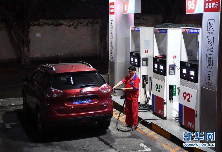 7月9日晚,重庆市沙坪坝区一加油站的工作人员在给车辆加油。在连续两次下调后,国内汽油和柴油价格迎来年内最大幅上调。国家发改委宣布,按照现行成品油价格形成机制,自2018年7月9日24时起,国内汽油、柴油价格每吨分别提高270元和260元。此次调价折合汽油和柴油价格每升上调约2角。