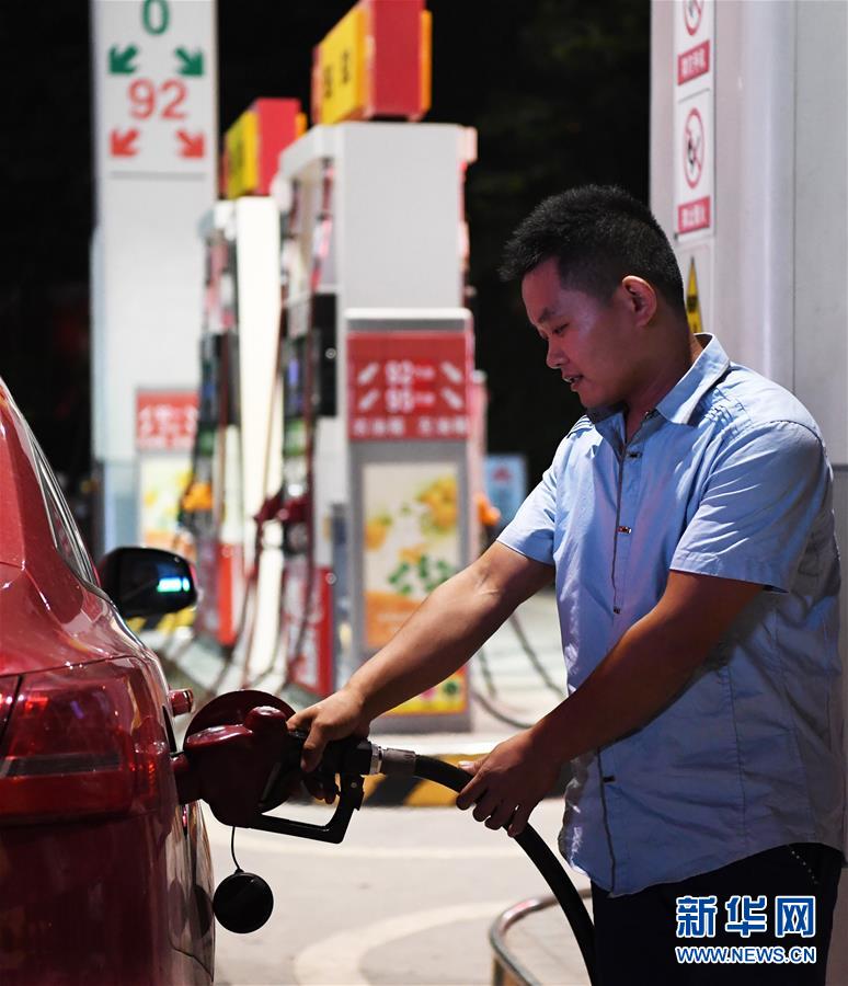 7月9日晚,重庆市沙坪坝区一加油站的工作人员在给车辆加油。在连续两次下调后,国内汽油和柴油价格迎来年内最大幅上调。国家发改委宣布,按照现行成品油价格形成机制,自2018年7月9日24时起,国内汽油、柴油价格每吨分别提高270元和260元。此次调价折合汽油和柴油价格每升上调约2角。