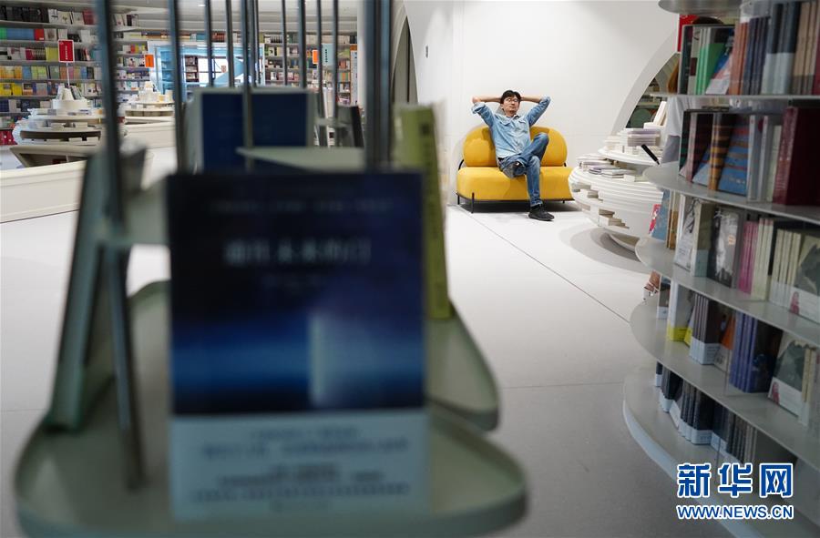 7月9日,一名读者在位于西安明光路的钟书阁书店内休息。