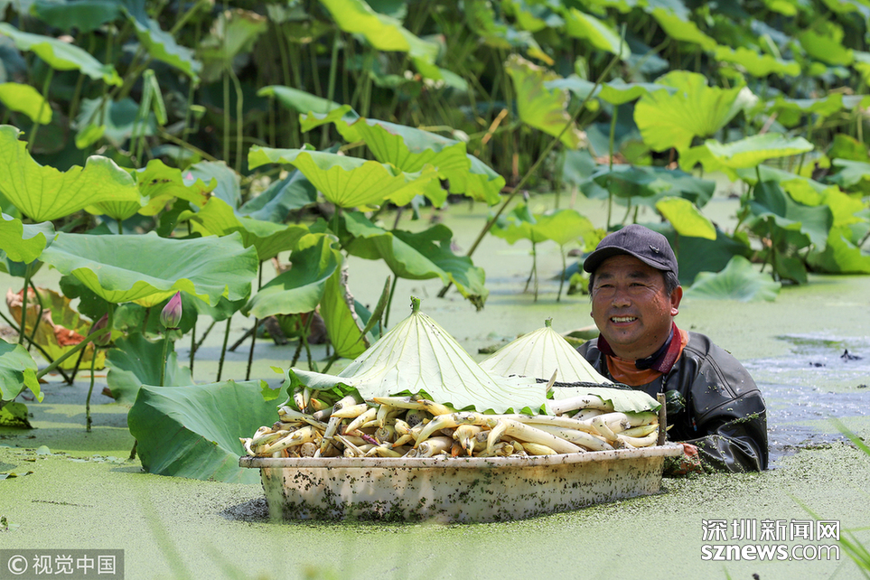 深圳新闻网讯2018年7月25日,江苏淮安,眼下,正值藕带上市时,在洪泽区,藕带畅销供不应求,每亩产量近万元。近年来,洪泽区藕塘种植户们已经形成藕虾共养,荷花观赏的经济链,实现了经济效益“多丰收”。