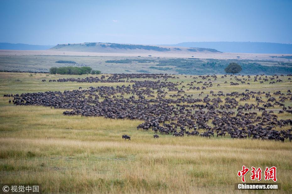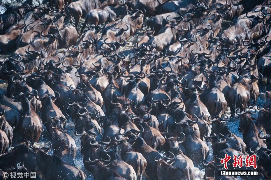 2018年8月15日讯(具体拍摄时间不详),摄影师在非洲捕捉到了一队近8万牛羚大军渡河迁徙的壮观一幕。每年6月雨季过后,大批牛羚会从坦桑尼亚的塞伦盖蒂平原迁移至肯尼亚的马赛马拉,期间将历时两个多月,跨越近1800英里(约合2900公里)的艰苦路程。在迁徙途中,牛羚需要穿过汹涌的马拉河,河里埋伏着不少饥饿的鳄鱼,危机四伏,牛羚们随时面临着死亡的威胁。大部分牛羚将在九月份抵达目的地,短暂地度过一两个月后,在11月短雨季来临前又将折返回赛伦盖提平原,年复一年,周而复始。每年夏季在非洲大草原上上演的动物大迁徙更是被评为了世界七大新奇迹之一,成为草原更新和自然循环的一部分。