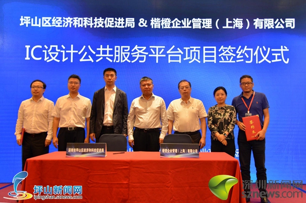 在政策推介过后,现场还举行了项目签约仪式,由坪山区经济和科技促进局与楷登企业管理(上海)有限公司就IC设计公共服务平台项目进行签约。