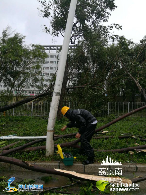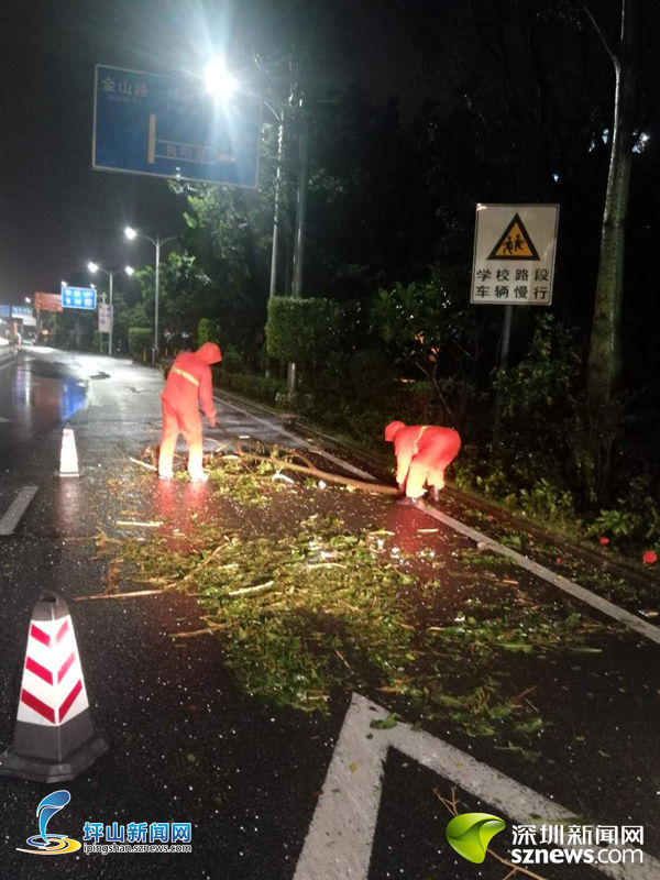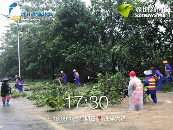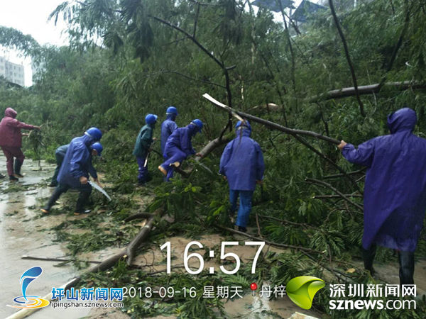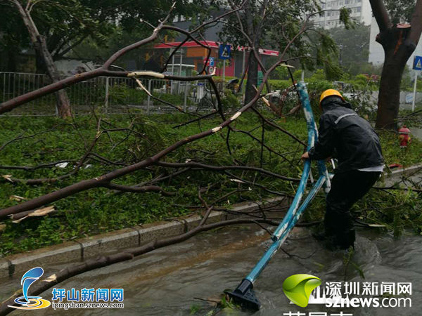 截至17日9时00分,坪山区城管局共发现倒伏树木1512棵,应急处置倒伏树木826棵,清理绿化垃圾86车;主次干道倒伏树木堵塞交通问题基本解决。未发现户外广告脱落伤人事件;对公园排水进行应急疏通,中心公园水面回落警戒线以下,其他公园未发生水流瘀堵;处置各方反馈的突发事件共计31宗;在台风过境全过程开展清理雨水篦子工作,并积极配合水务交警等部门处理下水道口的断枝堵塞;对破损路灯进行巡查和标记,发现结构受损路灯及庭院灯88杆,路灯线路多处受损,待积水退后进行抢修。