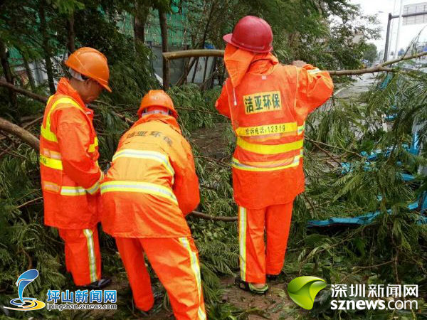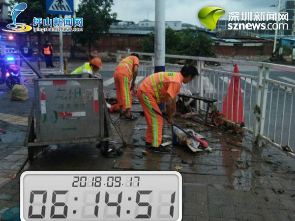 截至9月17日上午8时,坪山区城管部门组织各保洁企业出动环卫作业车辆96台,环卫作业人员约1600人,清理垃圾约300吨。