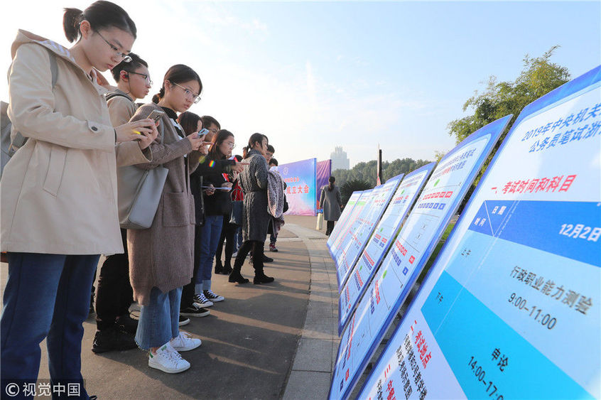 2018年12月2日,浙江宁波,考生在浙江万里学院考点看考场分布图。