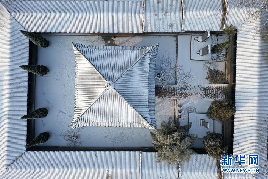 1月10日无人机拍摄的少林寺一景。当日,雪后初霁,河南登封少林寺分外秀美。