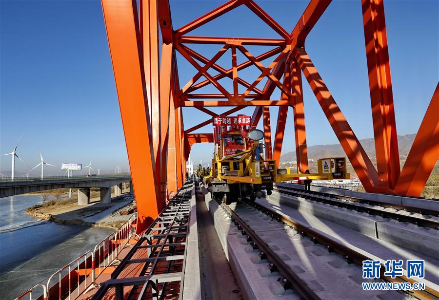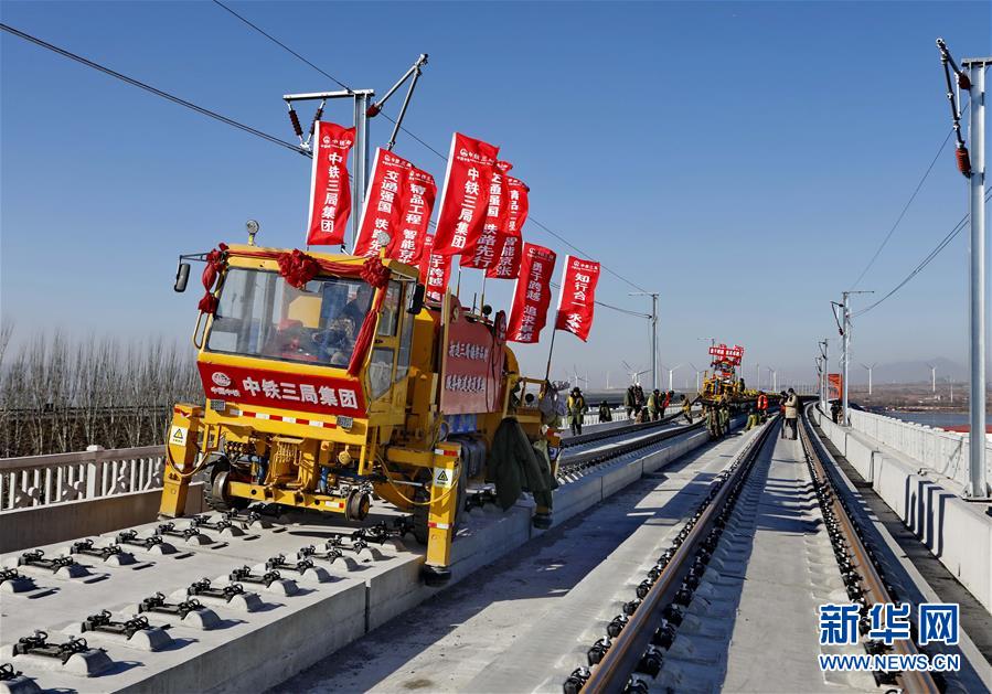 当日,京张高铁官厅水库特大桥铺轨工作完成。京张高铁全长174公里,是2022年北京冬奥会的重要交通保障线。
