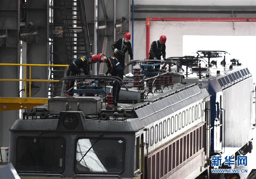 1月16日,重庆机务段职工在对机车车顶设备进行检修。临近春运,为确保春运旅客和货物列车运输安全,中国铁路成都局集团有限公司重庆机务段对全段机车进行专项检查、整修,为即将到来的春运做准备。