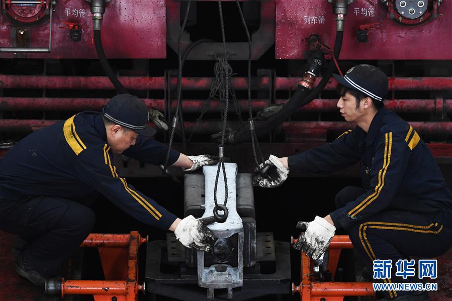 1月16日,重庆机务段职工在对机车车钩进行检修。临近春运,为确保春运旅客和货物列车运输安全,中国铁路成都局集团有限公司重庆机务段对全段机车进行专项检查、整修,为即将到来的春运做准备。